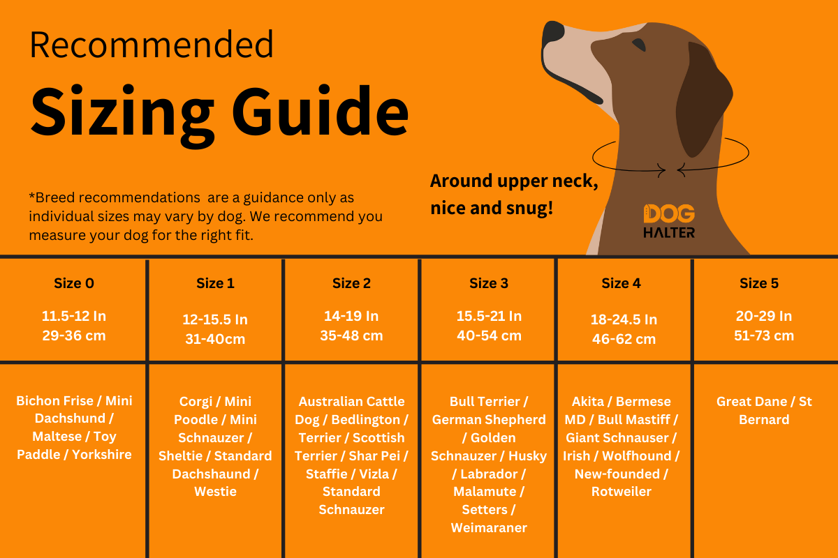 One Step - Place the measuring tape snug around the top of the dog's neck. Refer to the sizing chart for sizes 0-5. Tip: if you can't measure your dog, refer to the Typical Breeds.